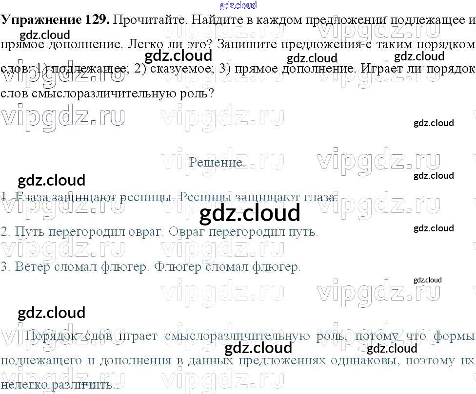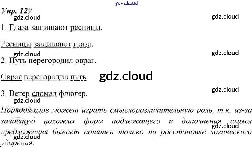 Ответ на задание 129 Учебник Русский язык за 8 (восьмой) класс Тростенцова, Ладыженская, Дейкина, Александрова 2014