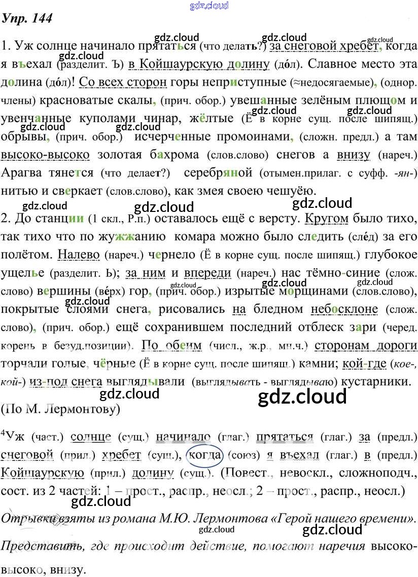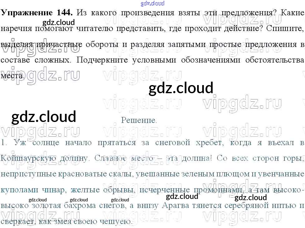 Ответ на задание 144 Учебник Русский язык за 8 (восьмой) класс Тростенцова, Ладыженская, Дейкина, Александрова 2014