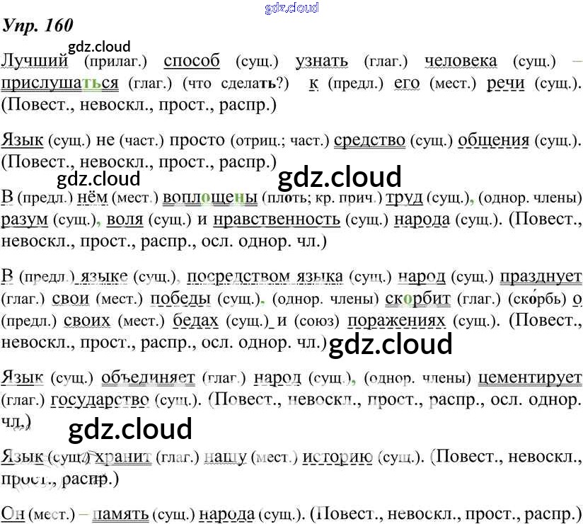 Ответ на задание 160 Учебник Русский язык за 8 (восьмой) класс Тростенцова, Ладыженская, Дейкина, Александрова 2014