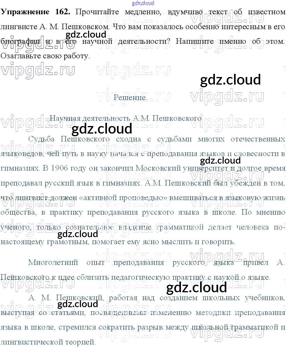 Ответ на задание 162 Учебник Русский язык за 8 (восьмой) класс Тростенцова, Ладыженская, Дейкина, Александрова 2014