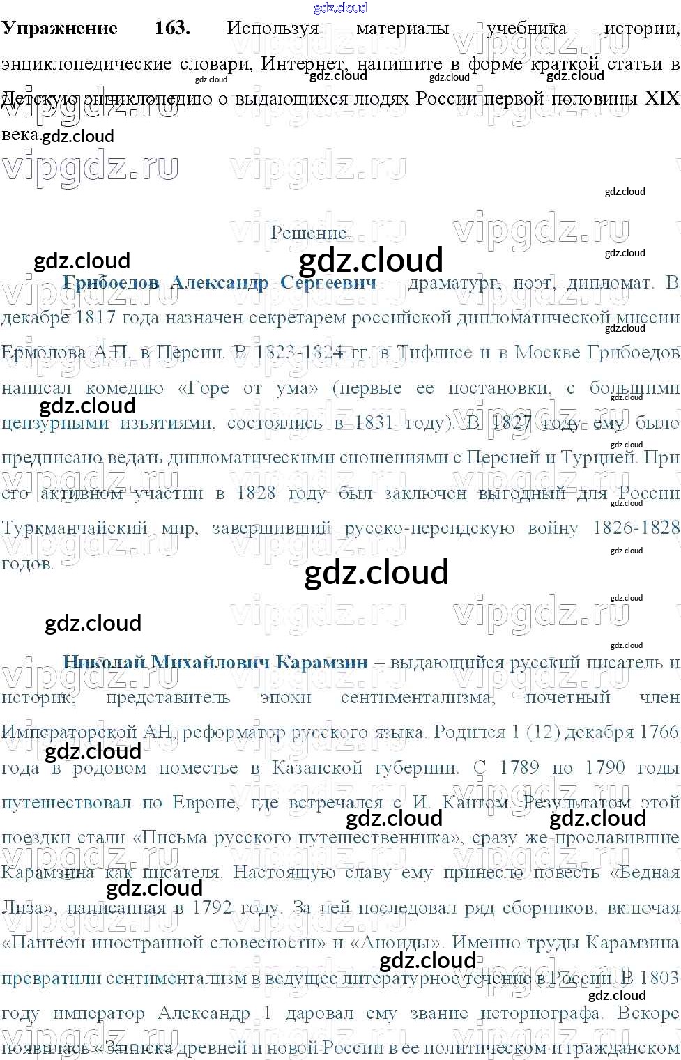 Ответ на задание 163 Учебник Русский язык за 8 (восьмой) класс Тростенцова, Ладыженская, Дейкина, Александрова 2014