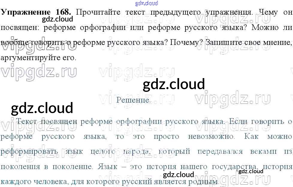 Ответ на задание 168 Учебник Русский язык за 8 (восьмой) класс Тростенцова, Ладыженская, Дейкина, Александрова 2014