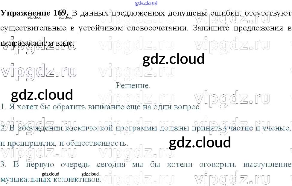 Ответ на задание 169 Учебник Русский язык за 8 (восьмой) класс Тростенцова, Ладыженская, Дейкина, Александрова 2014