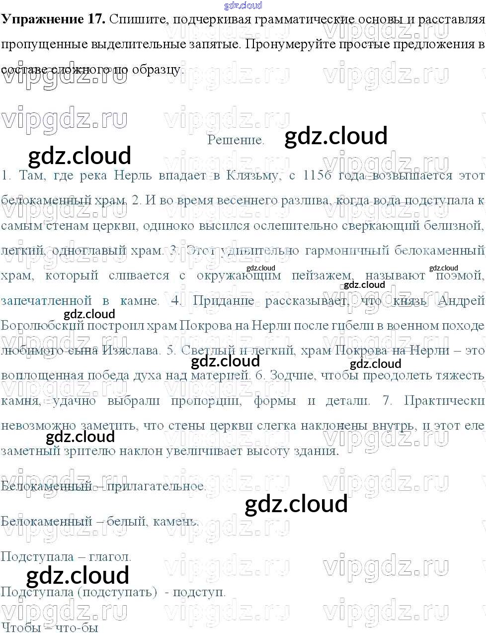 Ответ на задание 17 Учебник Русский язык за 8 (восьмой) класс Тростенцова, Ладыженская, Дейкина, Александрова 2014
