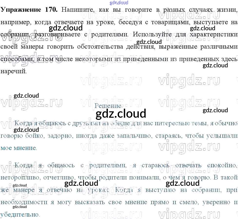 Ответ на задание 170 Учебник Русский язык за 8 (восьмой) класс Тростенцова, Ладыженская, Дейкина, Александрова 2014