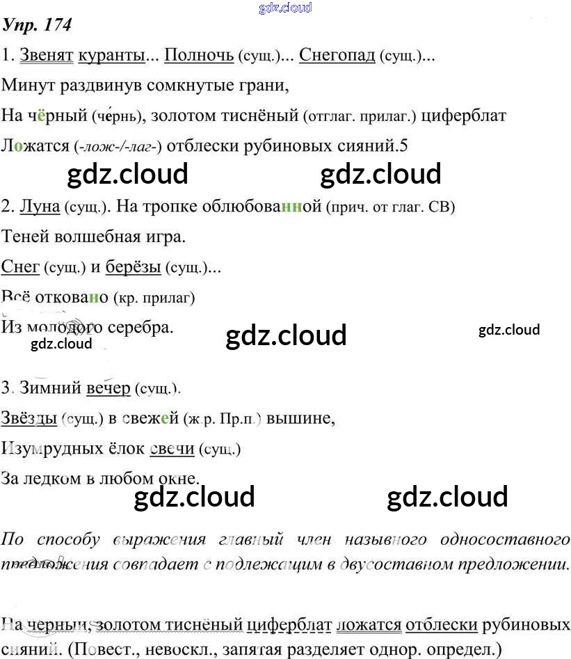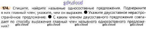 Ответ на задание 174 Учебник Русский язык за 8 (восьмой) класс Тростенцова, Ладыженская, Дейкина, Александрова 2014