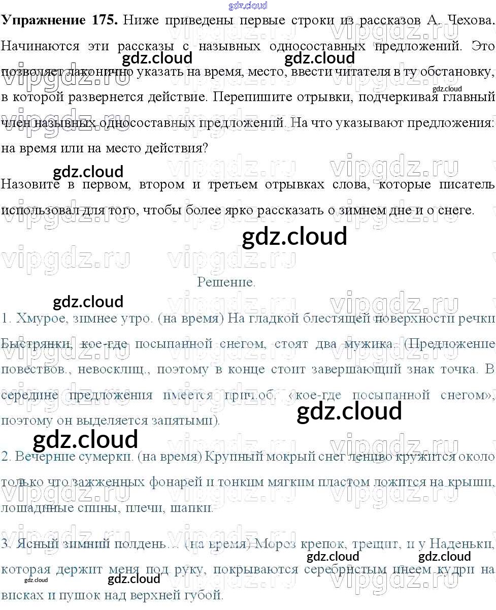 Ответ на задание 175 Учебник Русский язык за 8 (восьмой) класс Тростенцова, Ладыженская, Дейкина, Александрова 2014