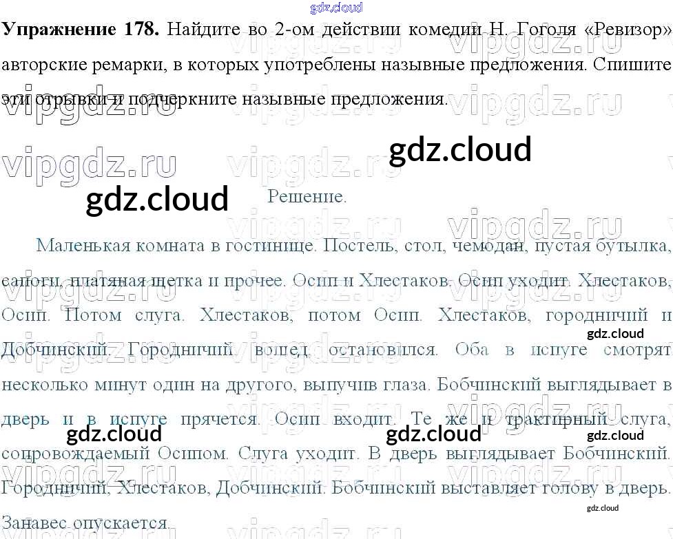 Ответ на задание 178 Учебник Русский язык за 8 (восьмой) класс Тростенцова, Ладыженская, Дейкина, Александрова 2014