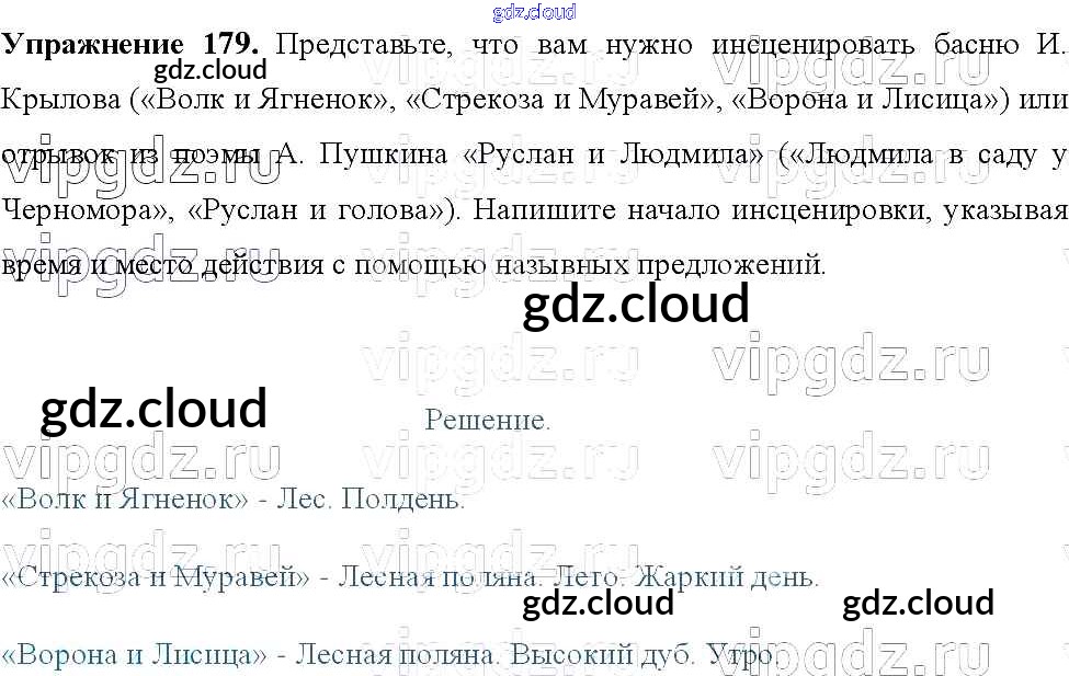 Ответ на задание 179 Учебник Русский язык за 8 (восьмой) класс Тростенцова, Ладыженская, Дейкина, Александрова 2014