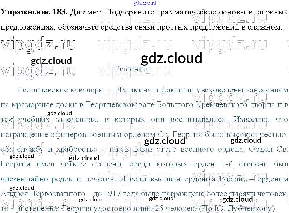Ответ на задание 183 Учебник Русский язык за 8 (восьмой) класс Тростенцова, Ладыженская, Дейкина, Александрова 2014
