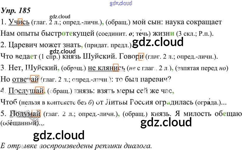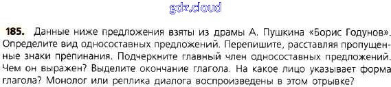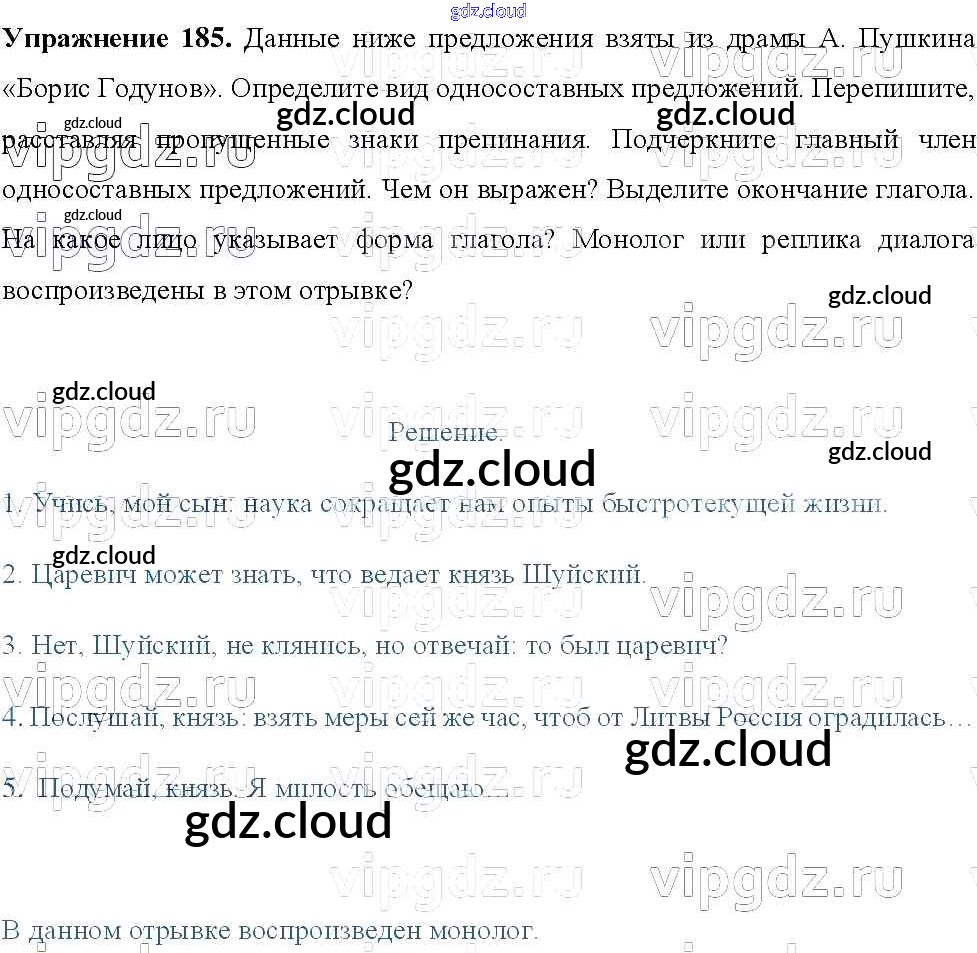 Ответ на задание 185 Учебник Русский язык за 8 (восьмой) класс Тростенцова, Ладыженская, Дейкина, Александрова 2014