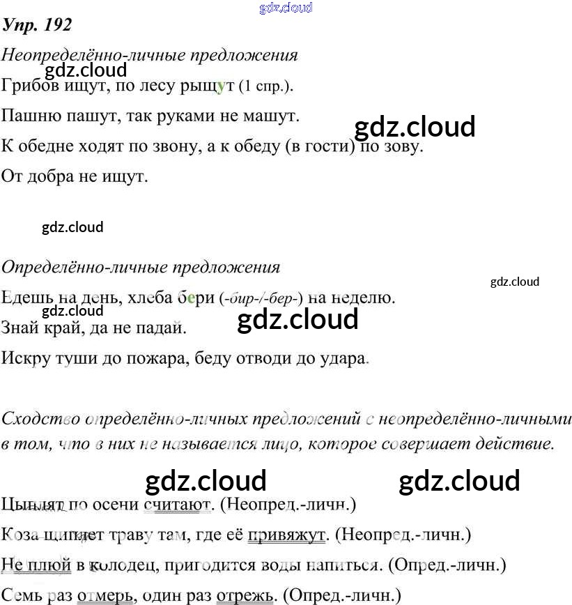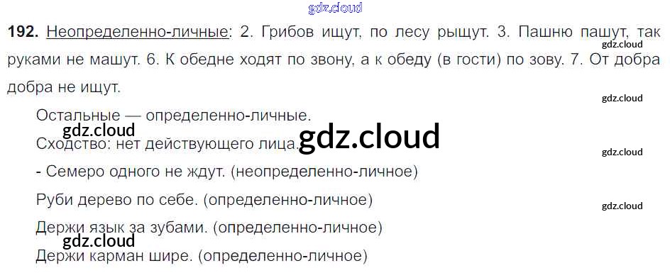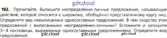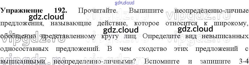 Ответ на задание 192 Учебник Русский язык за 8 (восьмой) класс Тростенцова, Ладыженская, Дейкина, Александрова 2014