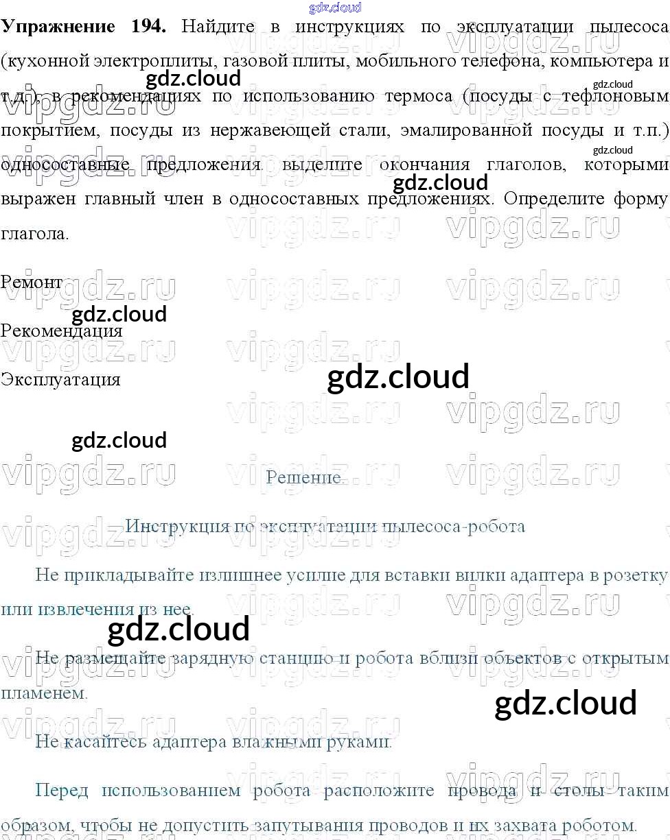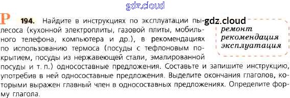 Ответ на задание 194 Учебник Русский язык за 8 (восьмой) класс Тростенцова, Ладыженская, Дейкина, Александрова 2014