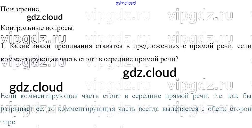 Ответы к контрольным вопросам по Русскому языку 8 класс Учебник Тростенцова Просвещение