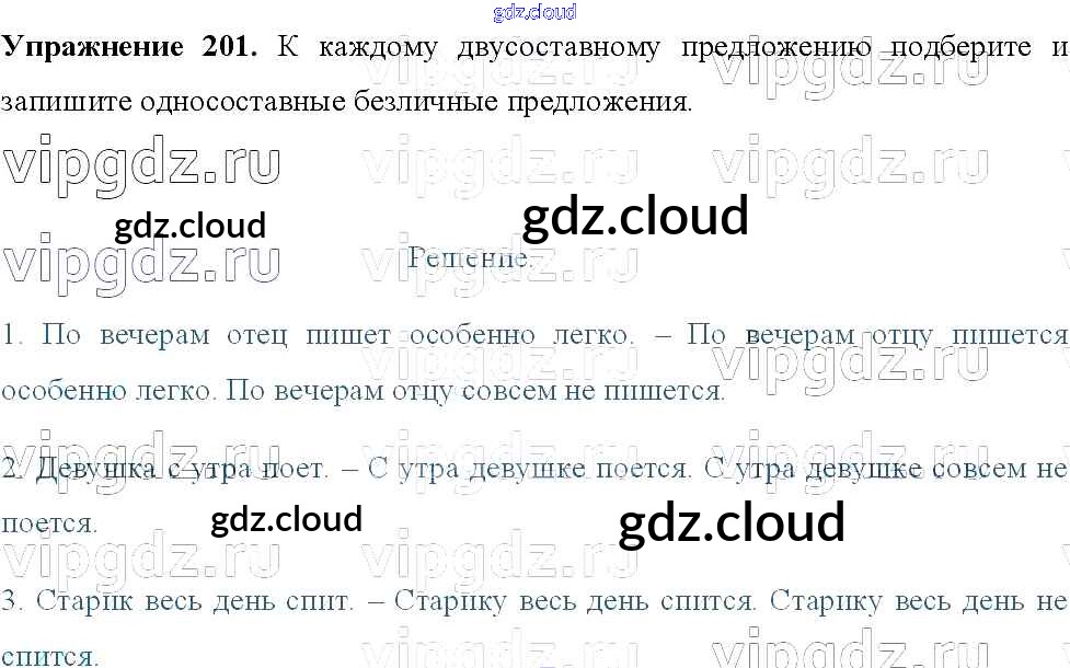 Ответ на задание 201 Учебник Русский язык за 8 (восьмой) класс Тростенцова, Ладыженская, Дейкина, Александрова 2014