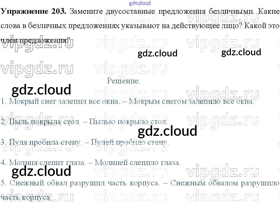 Ответ на задание 203 Учебник Русский язык за 8 (восьмой) класс Тростенцова, Ладыженская, Дейкина, Александрова 2014