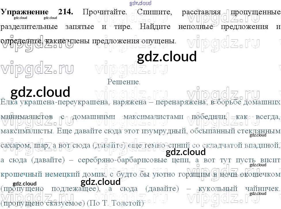 Ответ на задание 214 Учебник Русский язык за 8 (восьмой) класс Тростенцова, Ладыженская, Дейкина, Александрова 2014