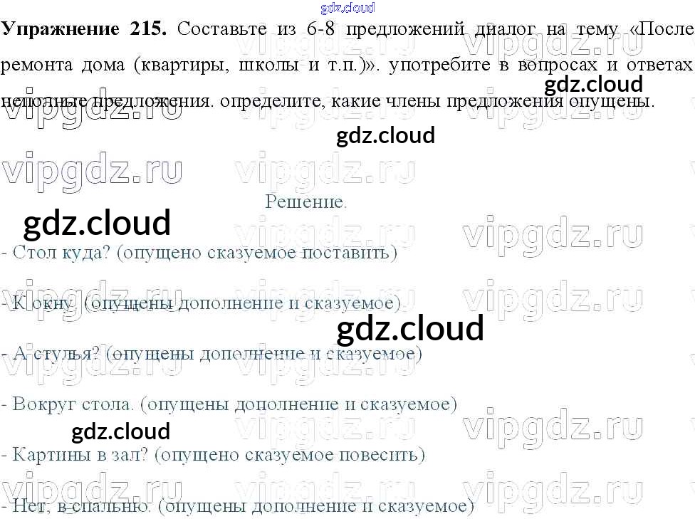 Ответ на задание 215 Учебник Русский язык за 8 (восьмой) класс Тростенцова, Ладыженская, Дейкина, Александрова 2014