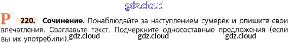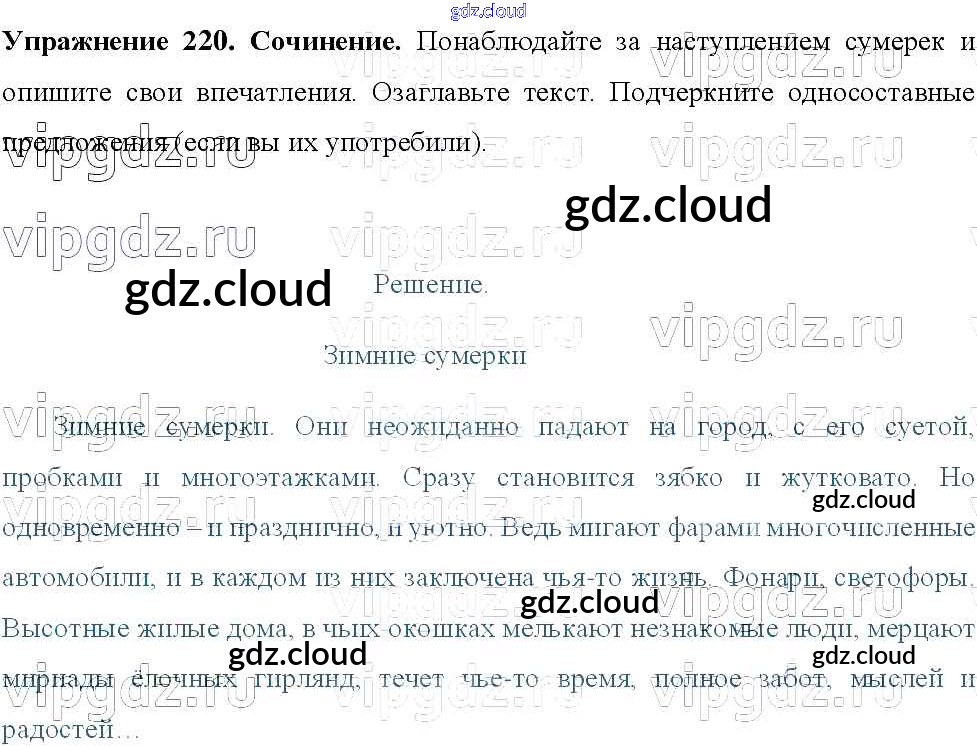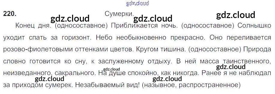 Ответ на задание 220 Учебник Русский язык за 8 (восьмой) класс Тростенцова, Ладыженская, Дейкина, Александрова 2014