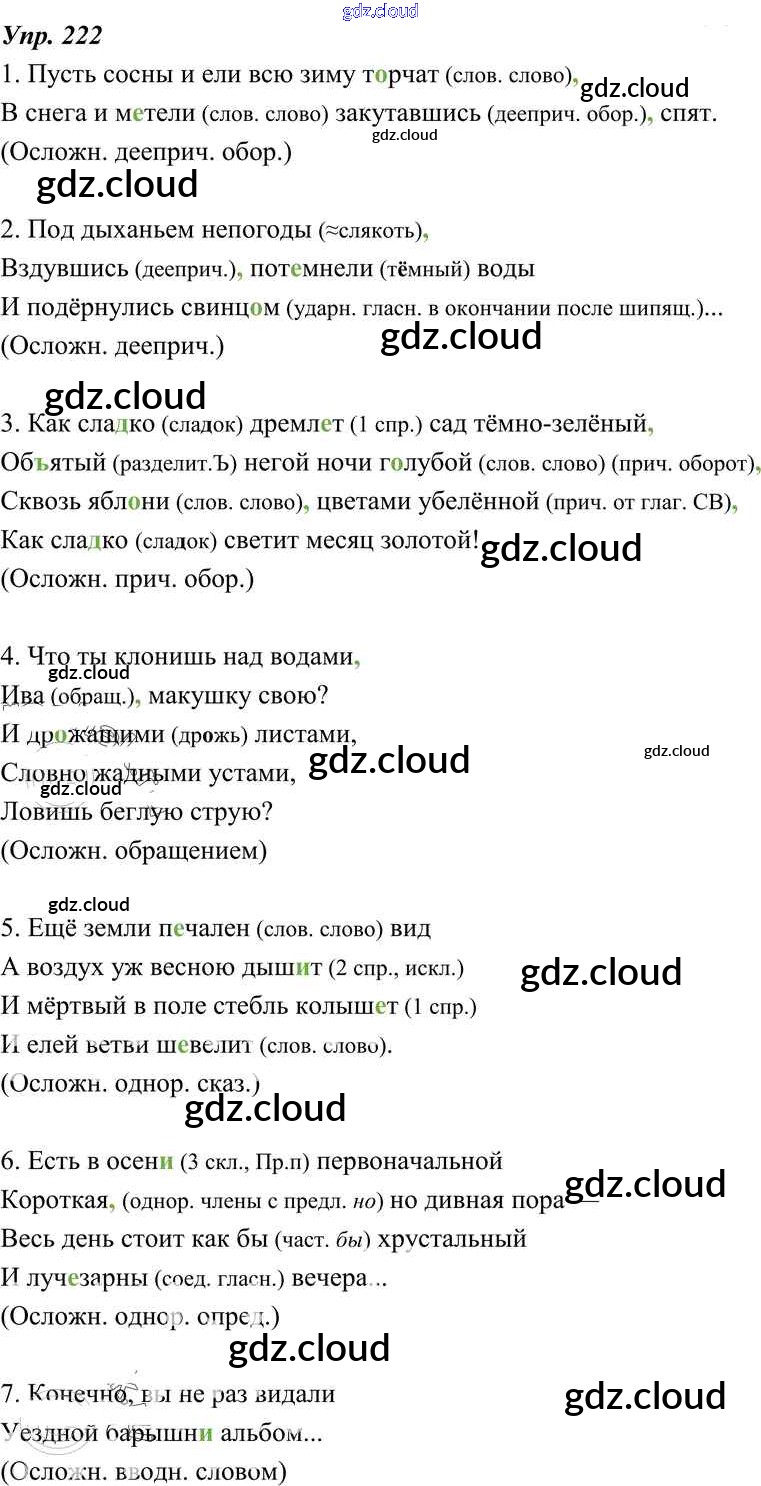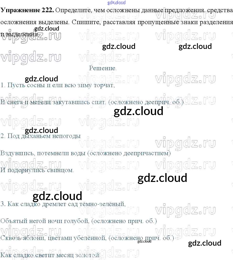 Ответ на задание 222 Учебник Русский язык за 8 (восьмой) класс Тростенцова, Ладыженская, Дейкина, Александрова 2014