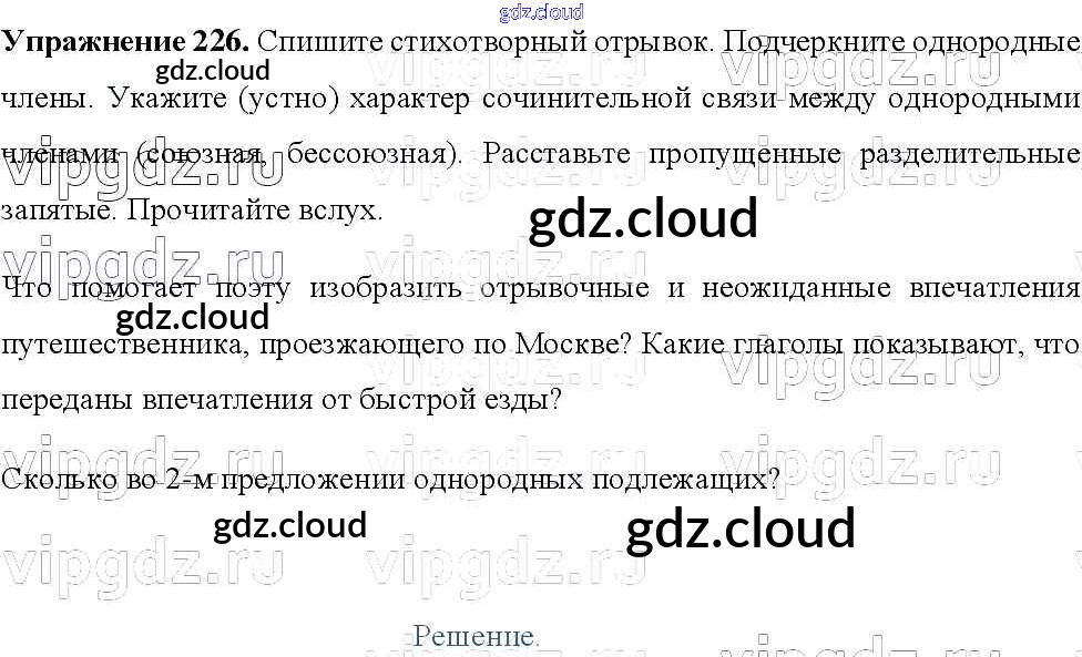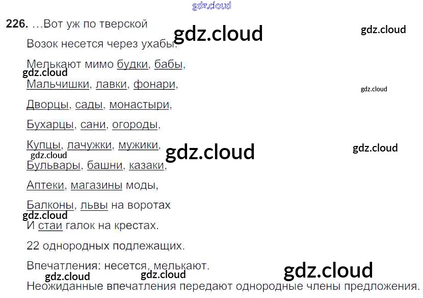 Ответ на задание 226 Учебник Русский язык за 8 (восьмой) класс Тростенцова, Ладыженская, Дейкина, Александрова 2014