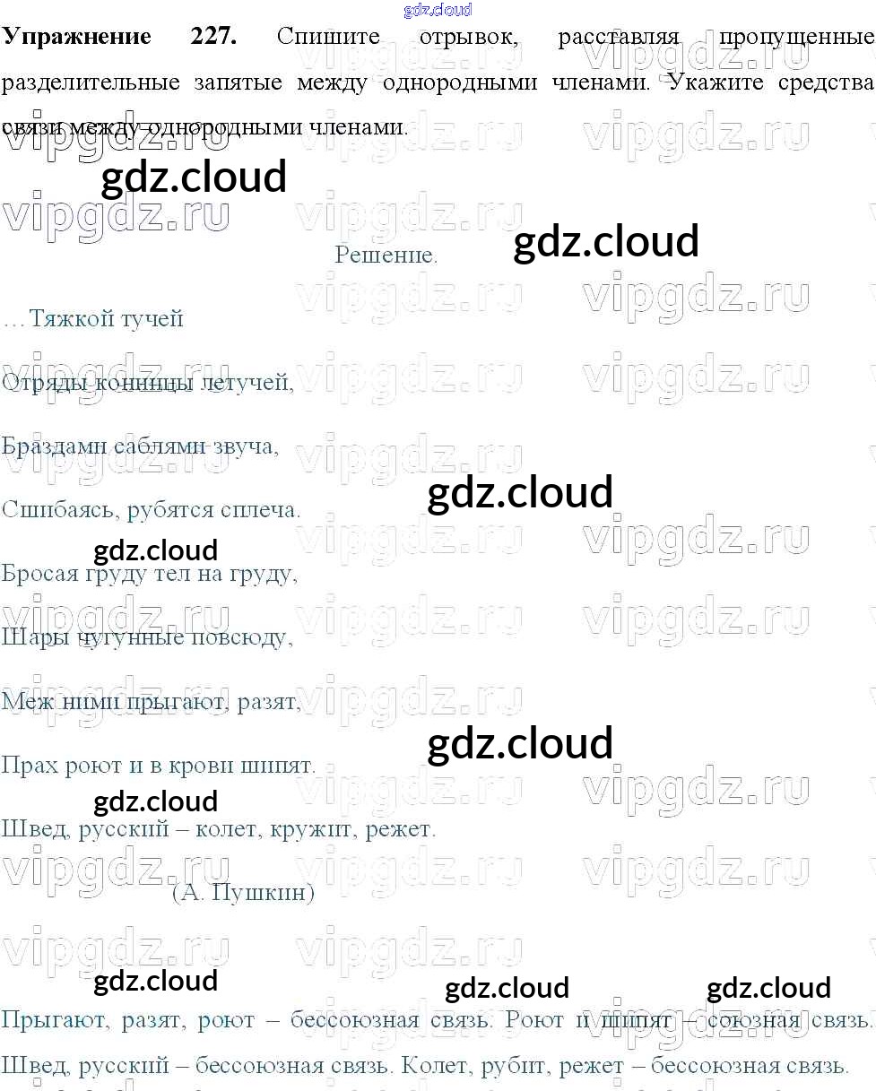Ответ на задание 227 Учебник Русский язык за 8 (восьмой) класс Тростенцова, Ладыженская, Дейкина, Александрова 2014