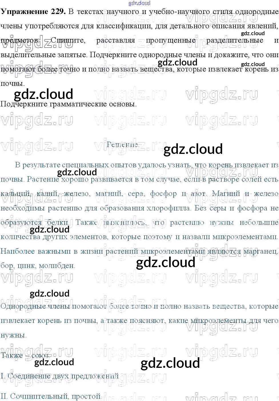 Ответ на задание 229 Учебник Русский язык за 8 (восьмой) класс Тростенцова, Ладыженская, Дейкина, Александрова 2014