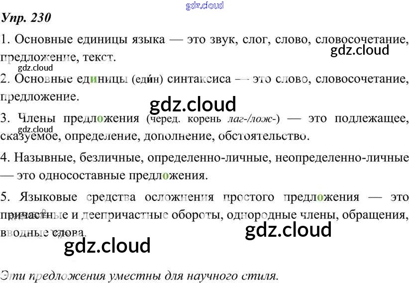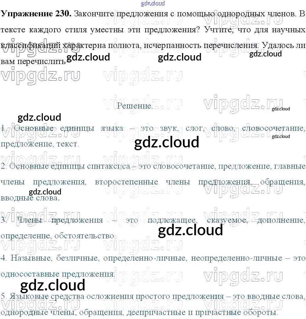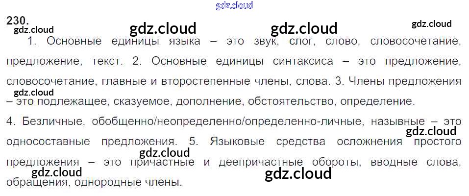 Ответ на задание 230 Учебник Русский язык за 8 (восьмой) класс Тростенцова, Ладыженская, Дейкина, Александрова 2014