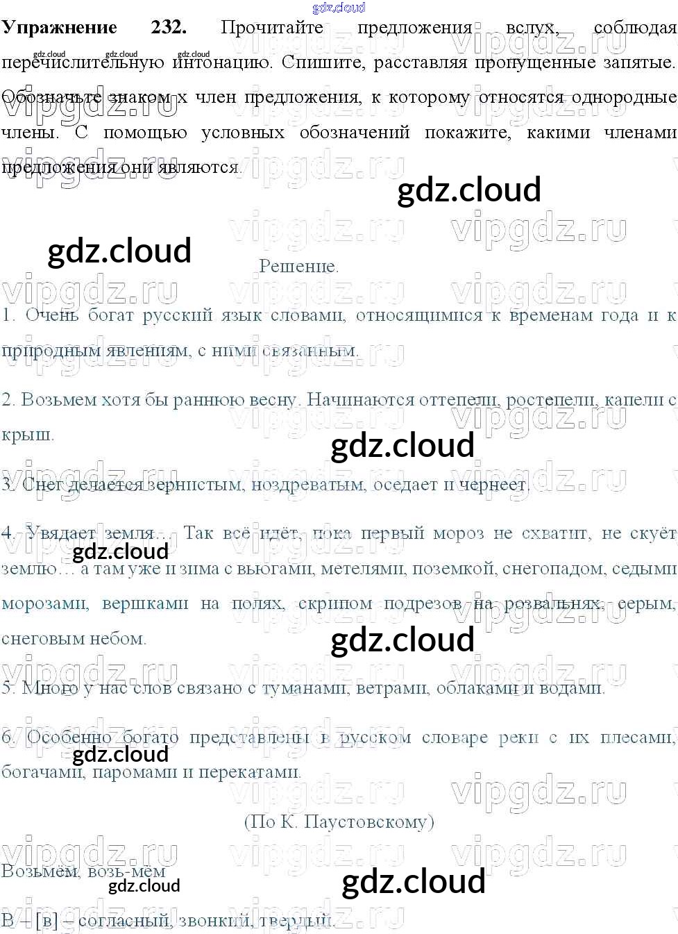 Ответ на задание 232 Учебник Русский язык за 8 (восьмой) класс Тростенцова, Ладыженская, Дейкина, Александрова 2014