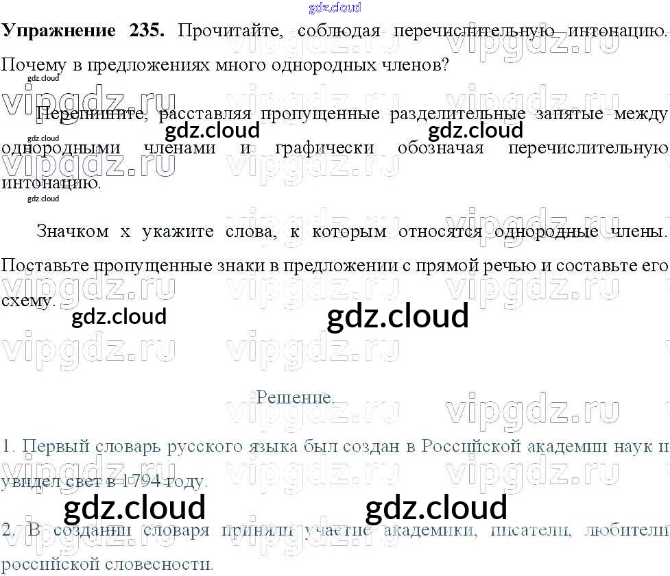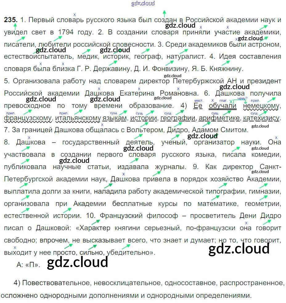 Ответ на задание 235 Учебник Русский язык за 8 (восьмой) класс Тростенцова, Ладыженская, Дейкина, Александрова 2014