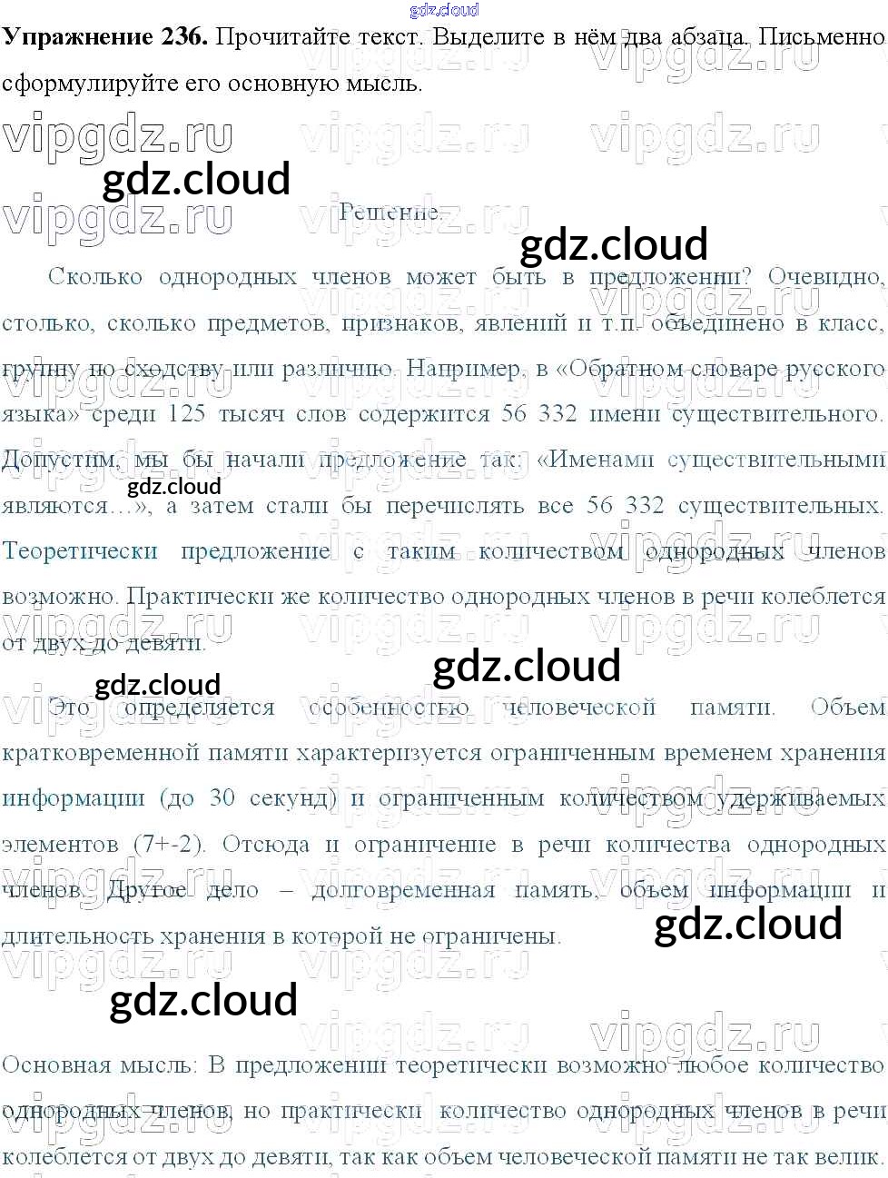 Ответ на задание 236 Учебник Русский язык за 8 (восьмой) класс Тростенцова, Ладыженская, Дейкина, Александрова 2014