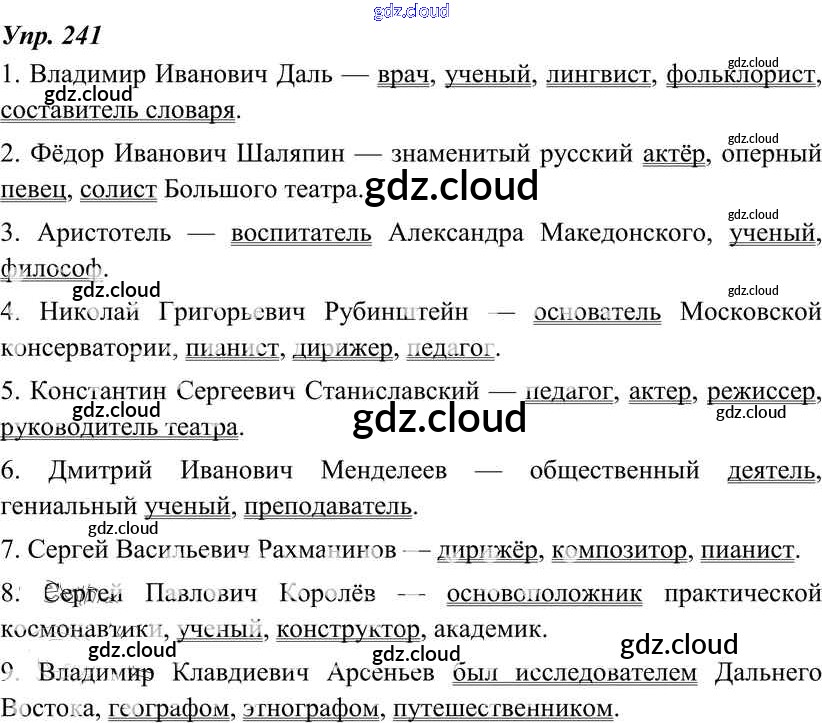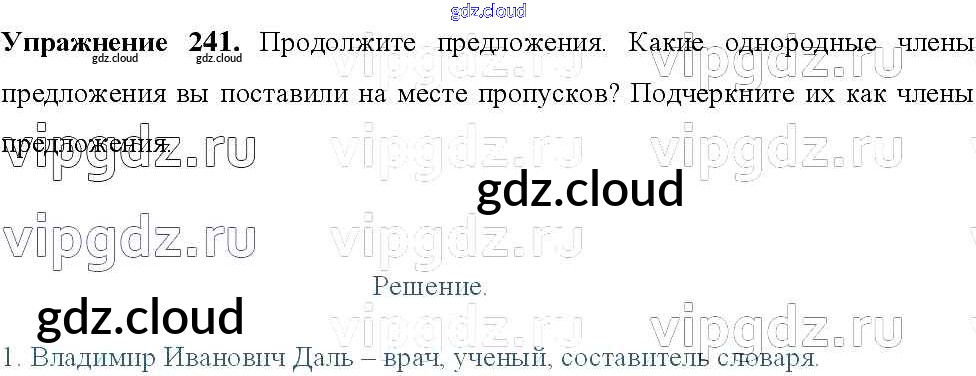 Ответ на задание 241 Учебник Русский язык за 8 (восьмой) класс Тростенцова, Ладыженская, Дейкина, Александрова 2014