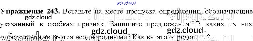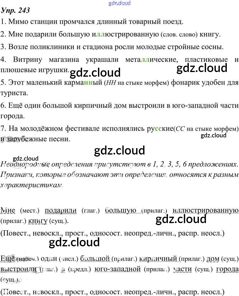 Ответ на задание 243 Учебник Русский язык за 8 (восьмой) класс Тростенцова, Ладыженская, Дейкина, Александрова 2014