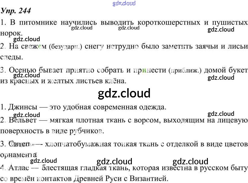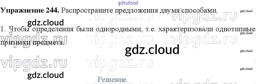 Ответ на задание 244 Учебник Русский язык за 8 (восьмой) класс Тростенцова, Ладыженская, Дейкина, Александрова 2014