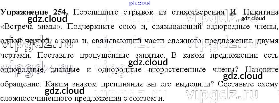 Ответ на задание 254 Учебник Русский язык за 8 (восьмой) класс Тростенцова, Ладыженская, Дейкина, Александрова 2014