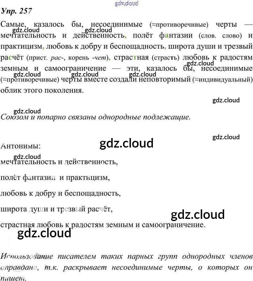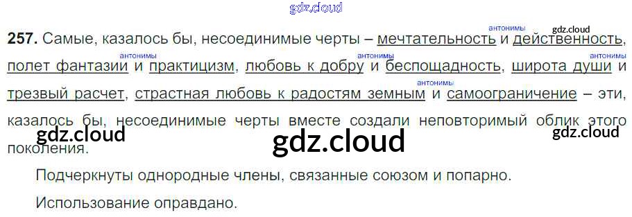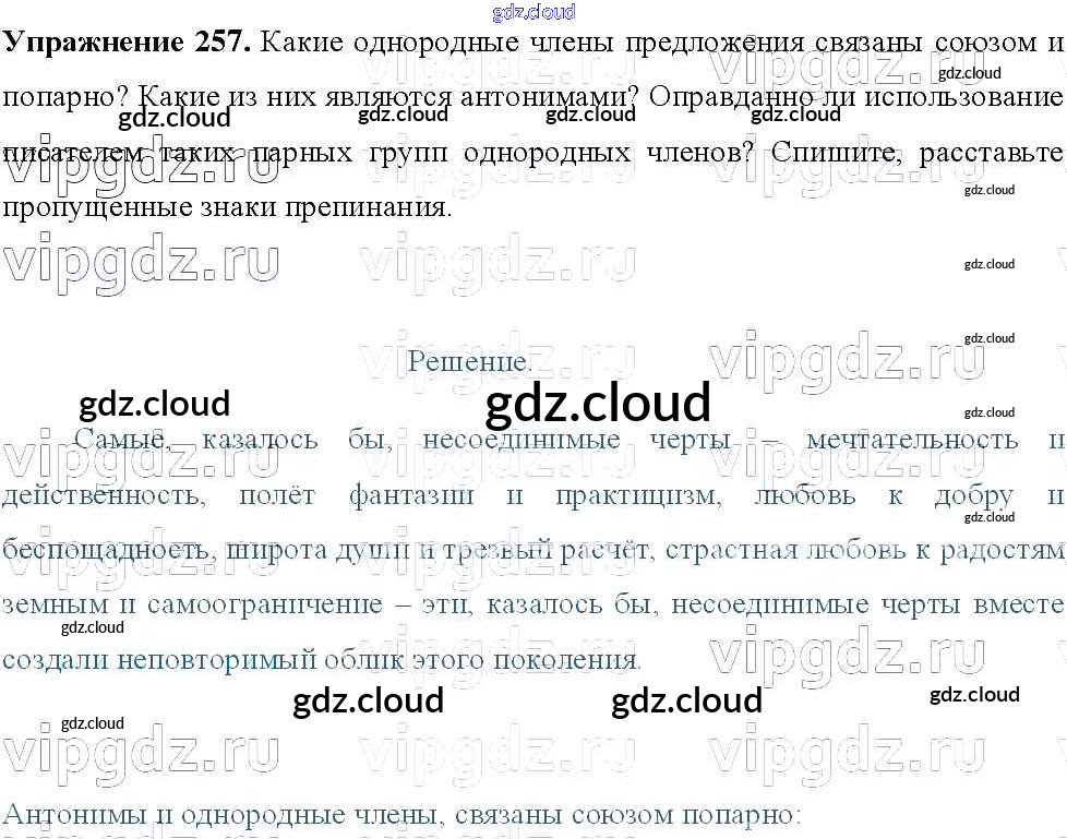 Ответ на задание 257 Учебник Русский язык за 8 (восьмой) класс Тростенцова, Ладыженская, Дейкина, Александрова 2014
