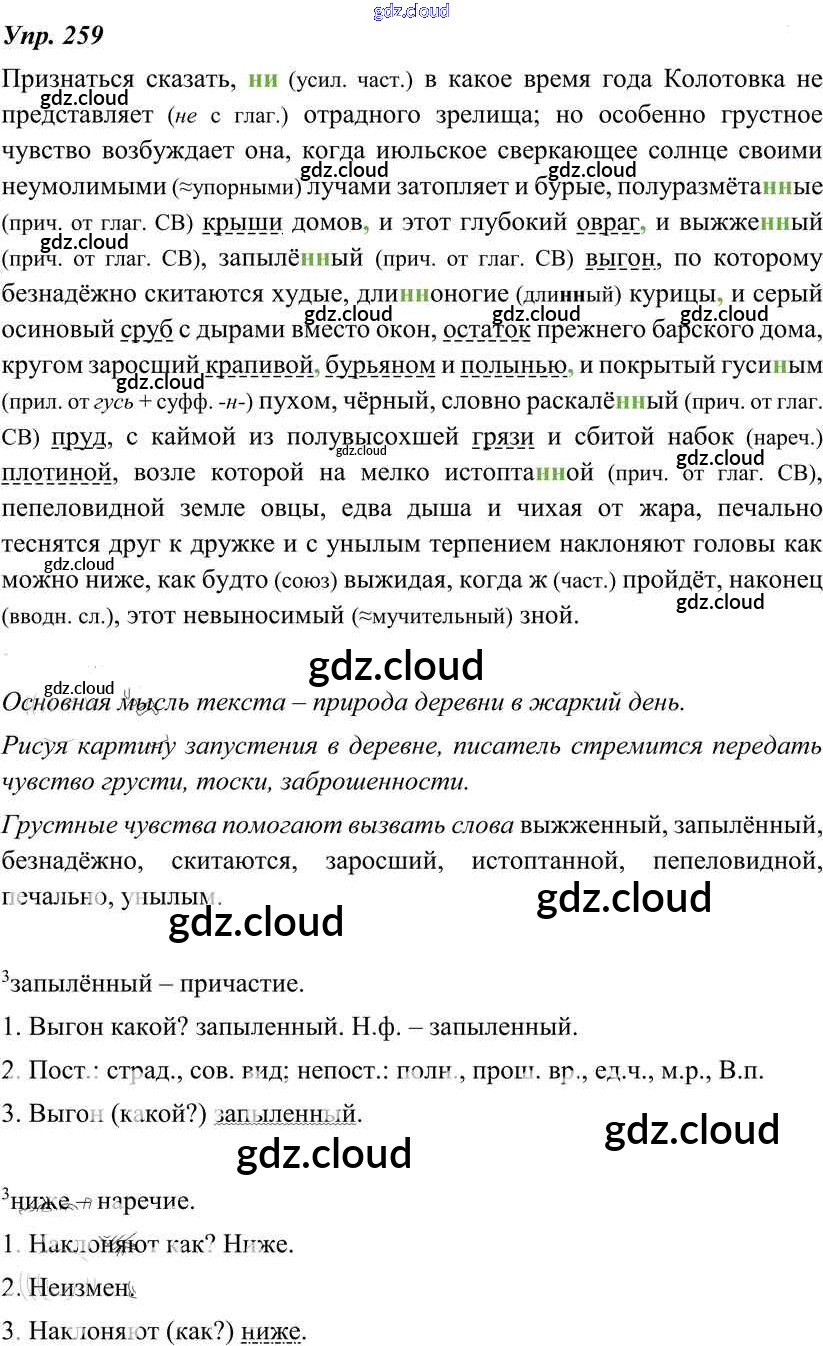 Ответ на задание 259 Учебник Русский язык за 8 (восьмой) класс Тростенцова, Ладыженская, Дейкина, Александрова 2014