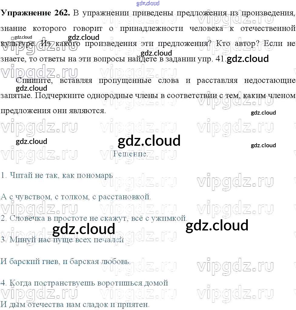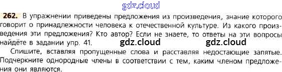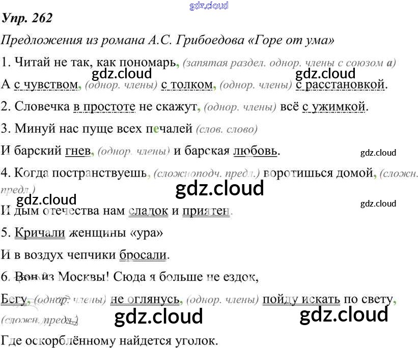 Ответ на задание 262 Учебник Русский язык за 8 (восьмой) класс Тростенцова, Ладыженская, Дейкина, Александрова 2014
