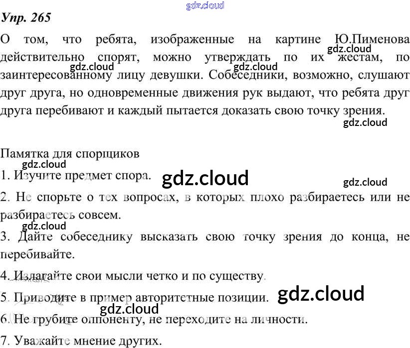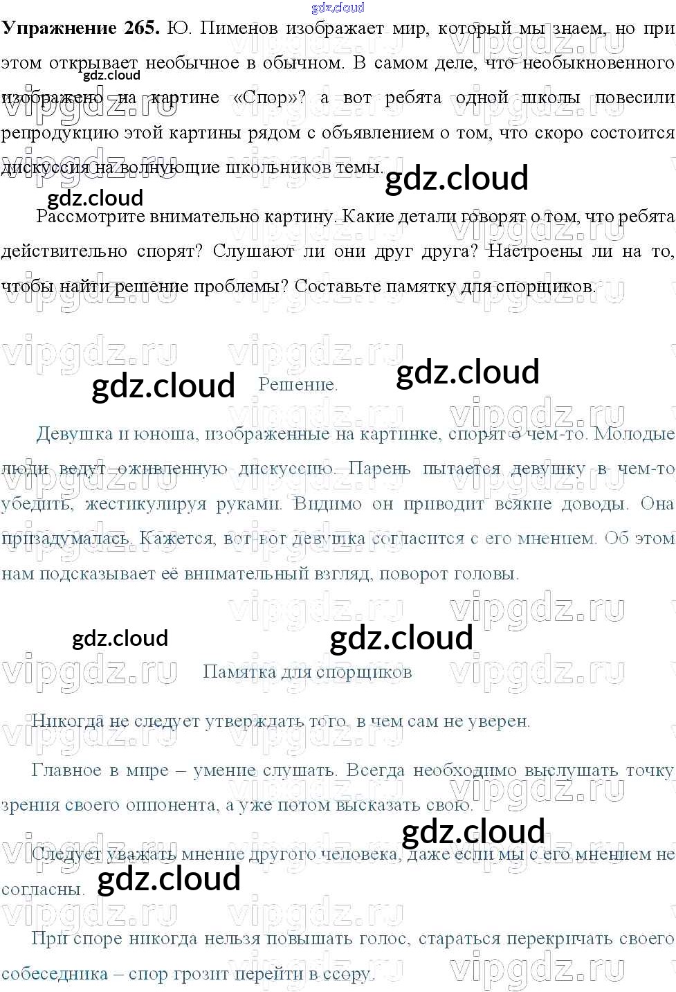 Ответ на задание 265 Учебник Русский язык за 8 (восьмой) класс Тростенцова, Ладыженская, Дейкина, Александрова 2014