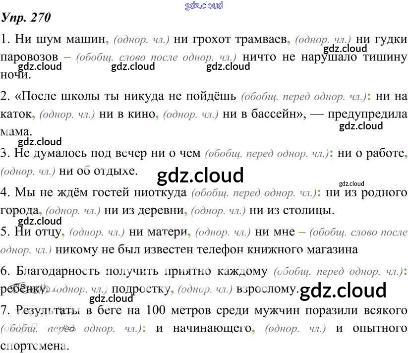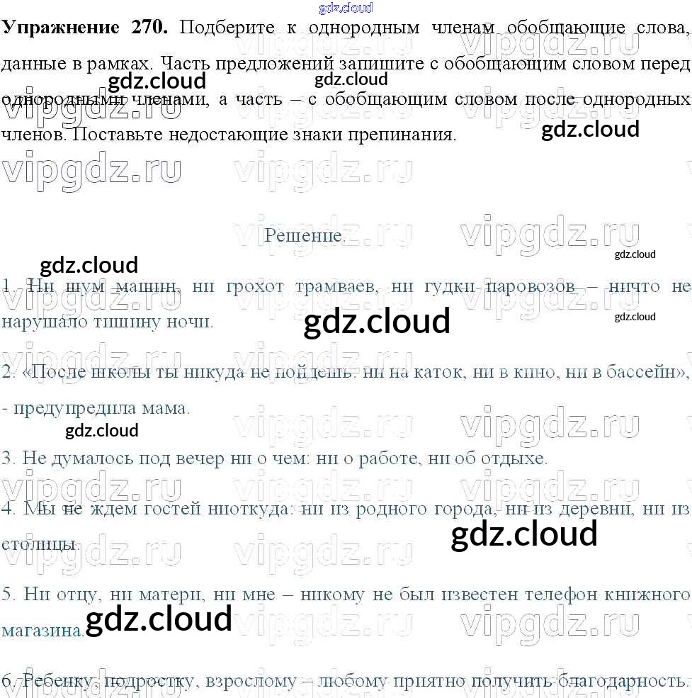 Ответ на задание 270 Учебник Русский язык за 8 (восьмой) класс Тростенцова, Ладыженская, Дейкина, Александрова 2014