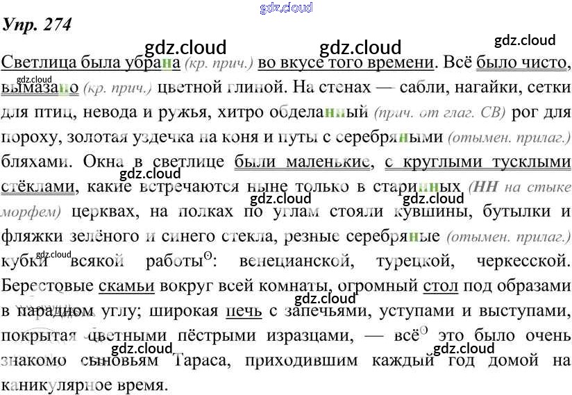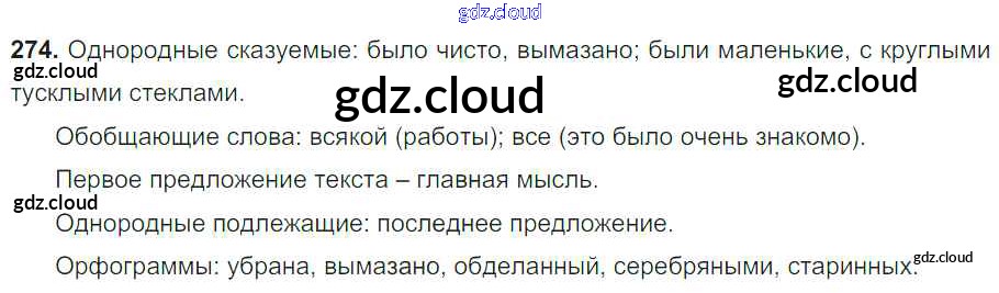 Ответ на задание 274 Учебник Русский язык за 8 (восьмой) класс Тростенцова, Ладыженская, Дейкина, Александрова 2014