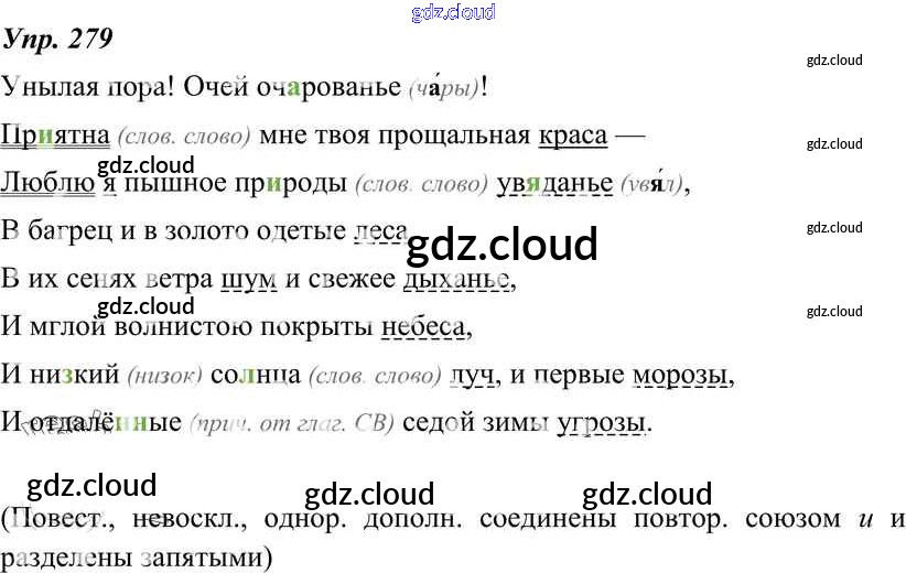 Ответ на задание 279 Учебник Русский язык за 8 (восьмой) класс Тростенцова, Ладыженская, Дейкина, Александрова 2014