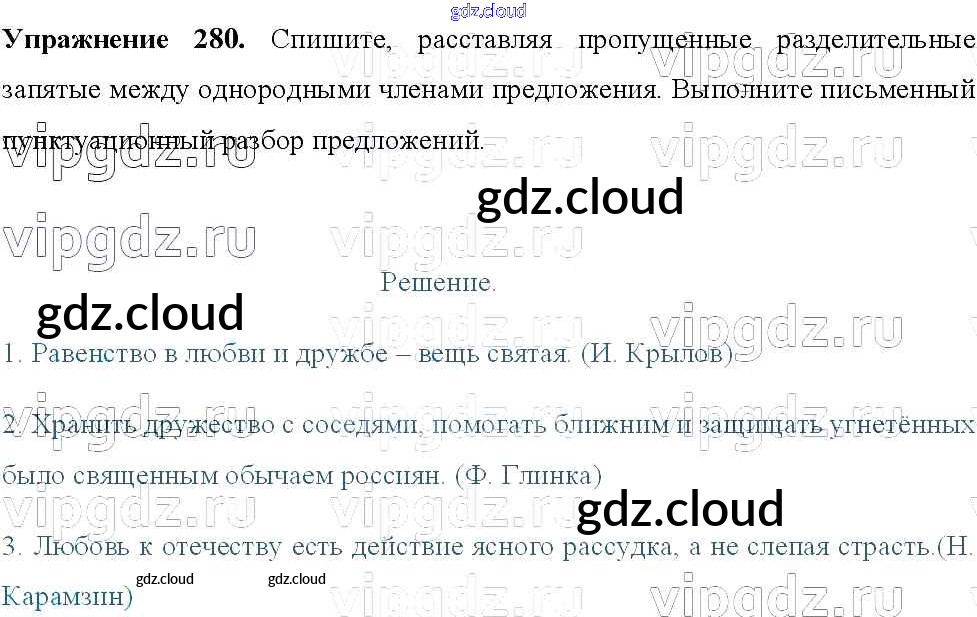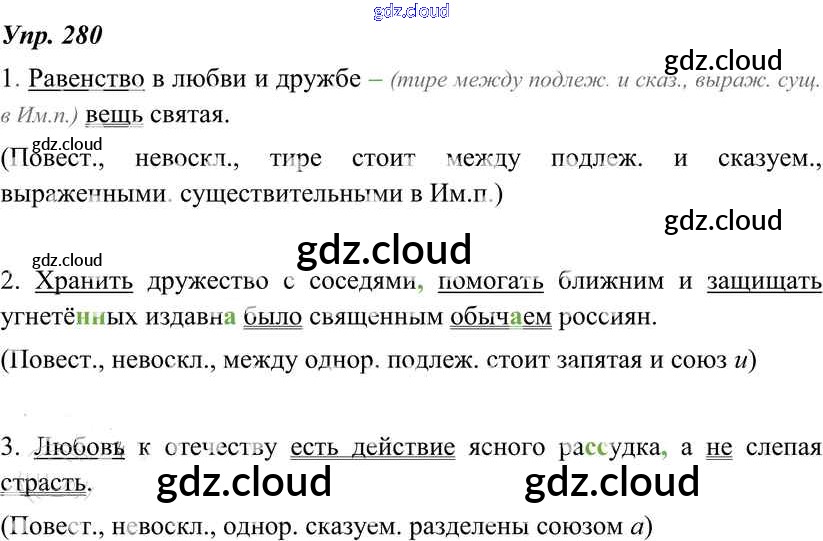 Ответ на задание 280 Учебник Русский язык за 8 (восьмой) класс Тростенцова, Ладыженская, Дейкина, Александрова 2014