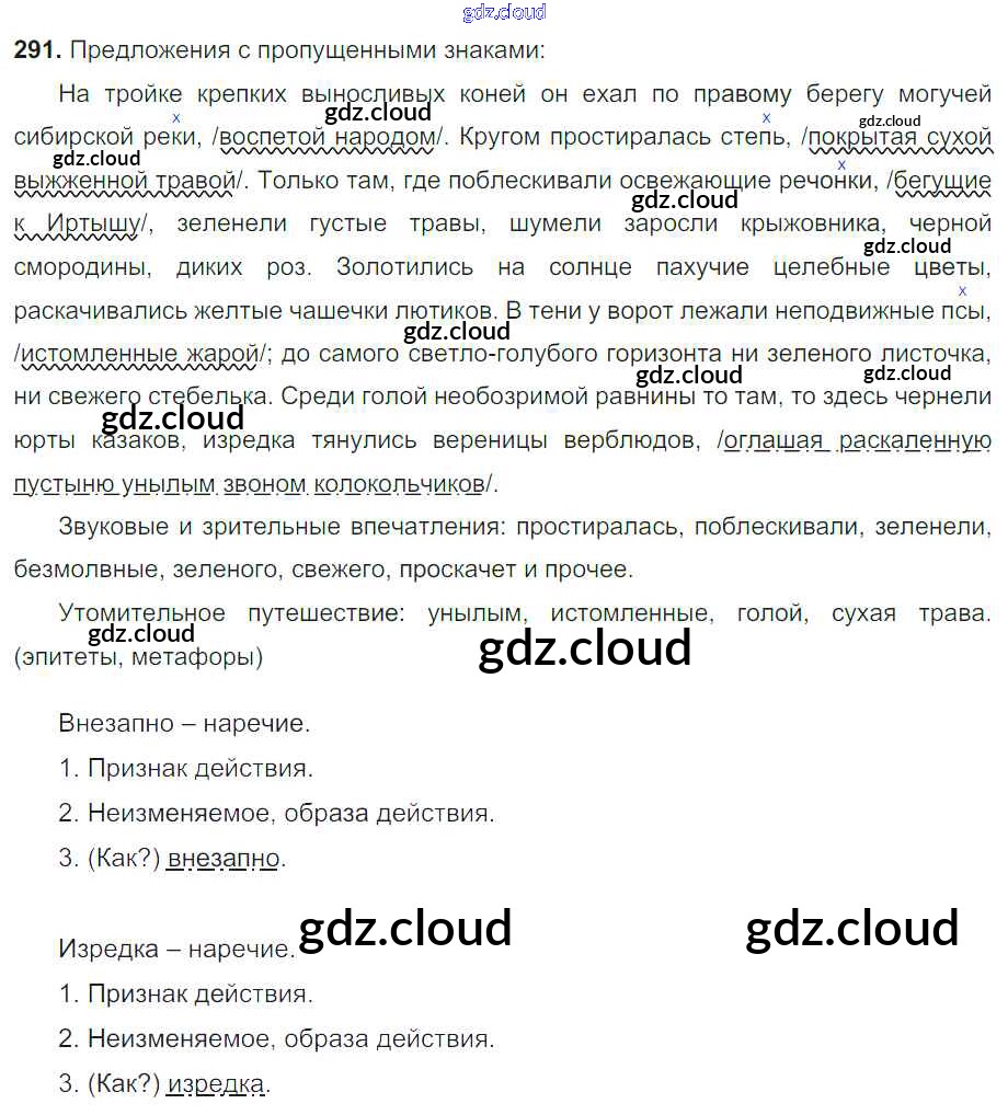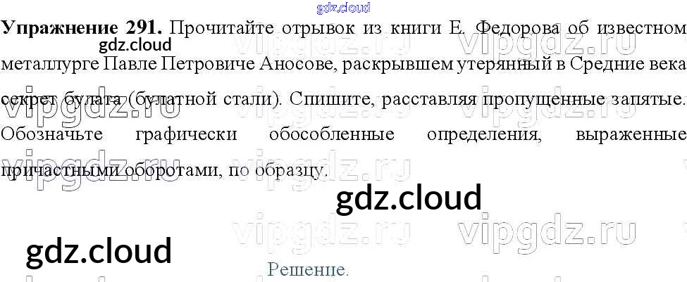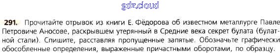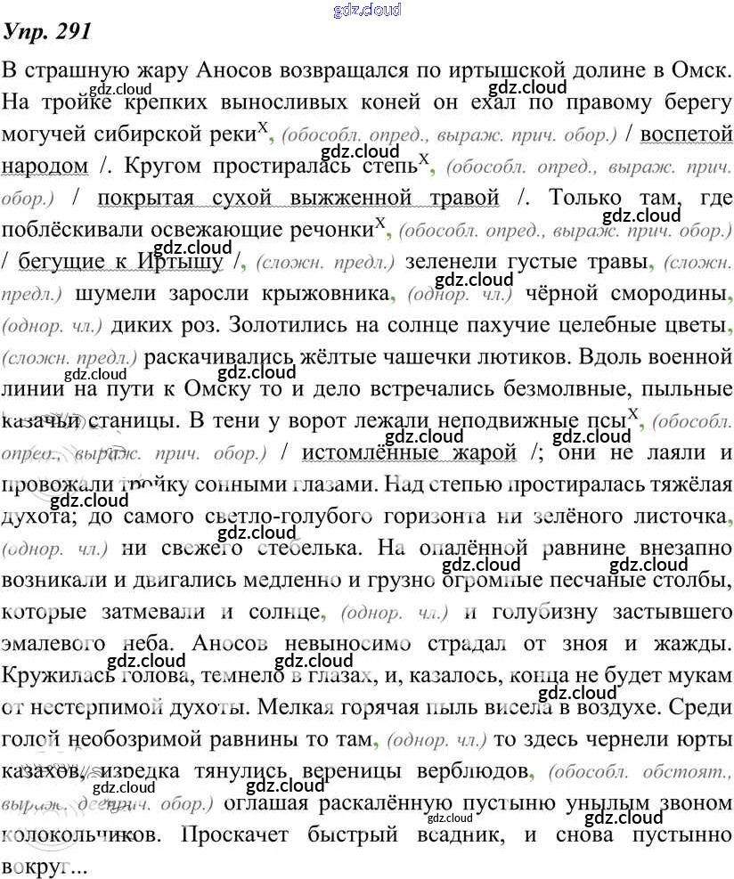 Ответ на задание 291 Учебник Русский язык за 8 (восьмой) класс Тростенцова, Ладыженская, Дейкина, Александрова 2014