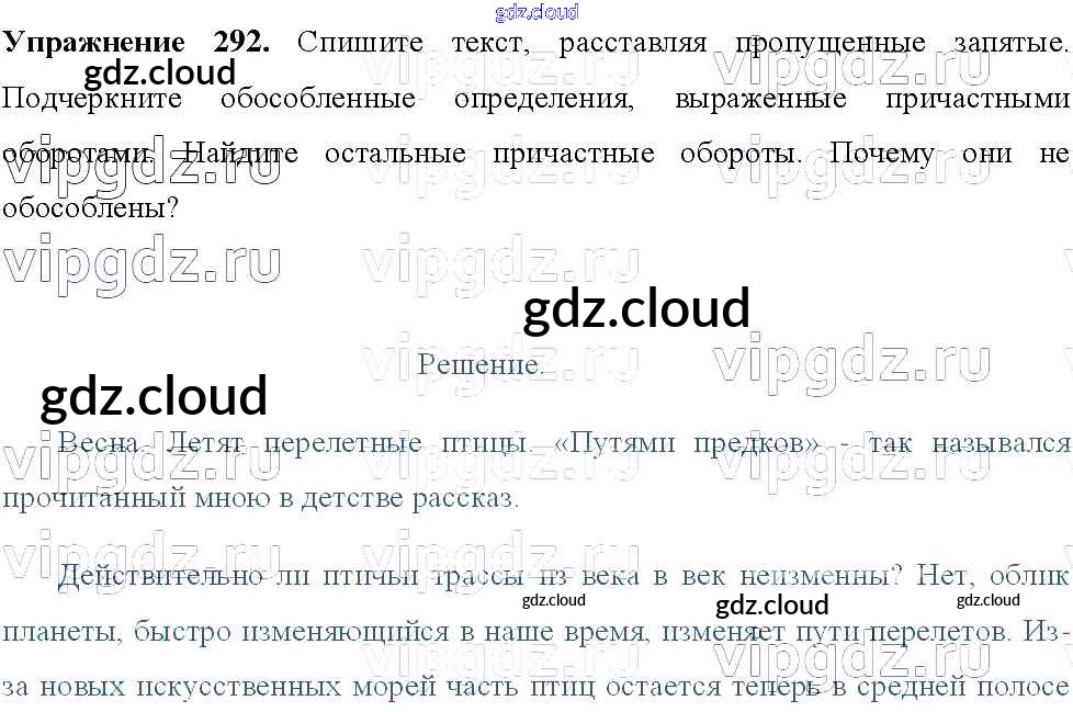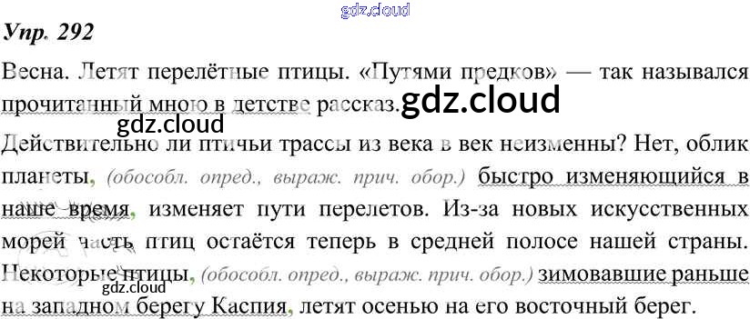 Ответ на задание 292 Учебник Русский язык за 8 (восьмой) класс Тростенцова, Ладыженская, Дейкина, Александрова 2014