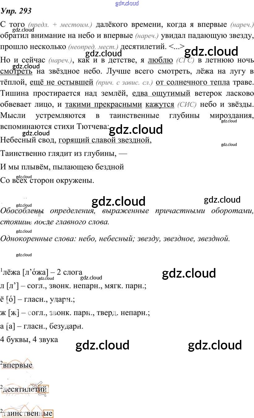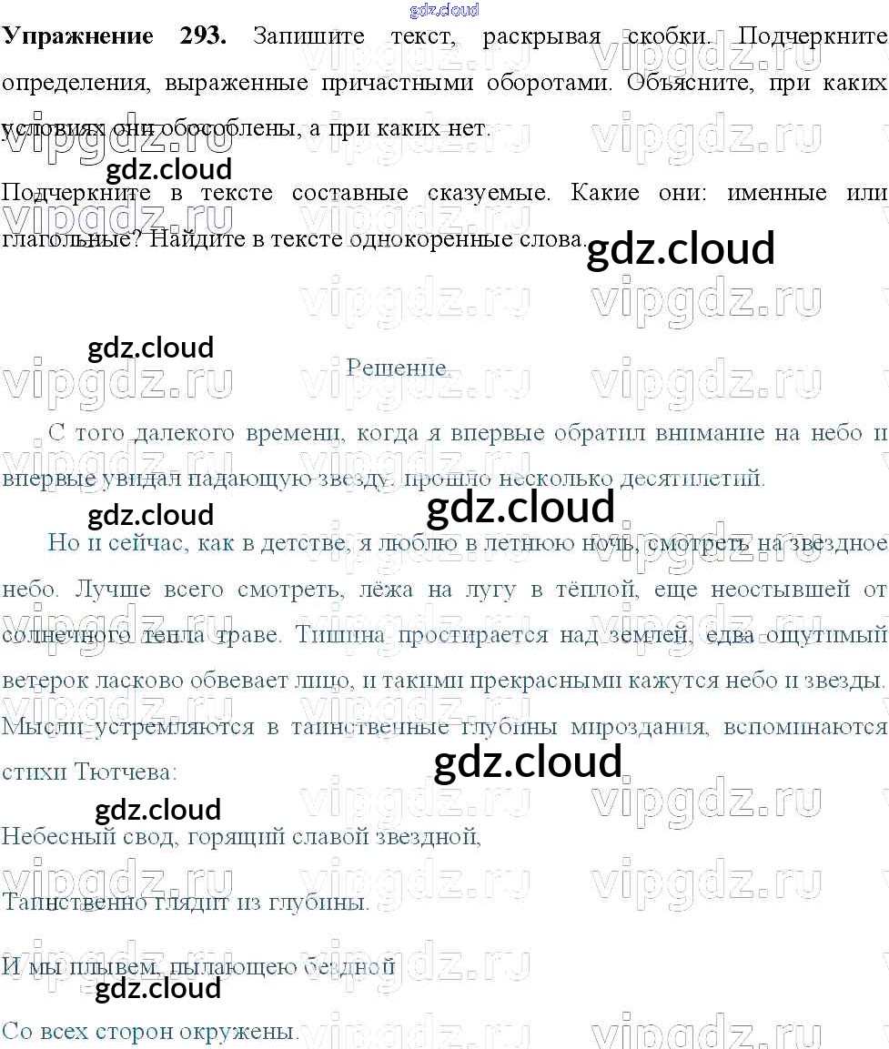 Ответ на задание 293 Учебник Русский язык за 8 (восьмой) класс Тростенцова, Ладыженская, Дейкина, Александрова 2014