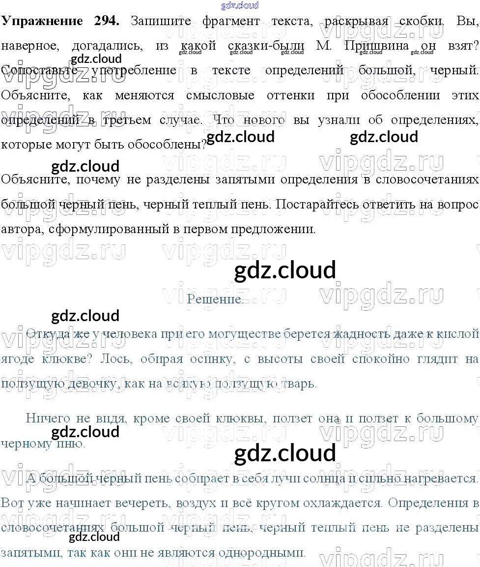 Ответ на задание 294 Учебник Русский язык за 8 (восьмой) класс Тростенцова, Ладыженская, Дейкина, Александрова 2014