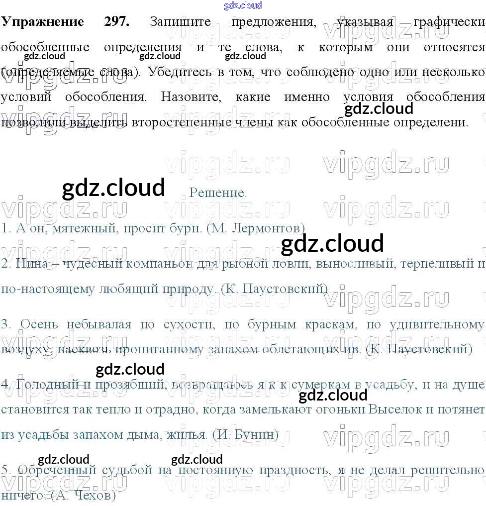 Ответ на задание 297 Учебник Русский язык за 8 (восьмой) класс Тростенцова, Ладыженская, Дейкина, Александрова 2014