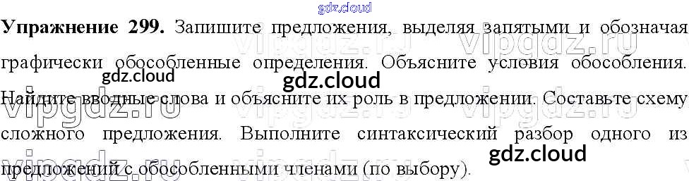 Ответ на задание 299 Учебник Русский язык за 8 (восьмой) класс Тростенцова, Ладыженская, Дейкина, Александрова 2014