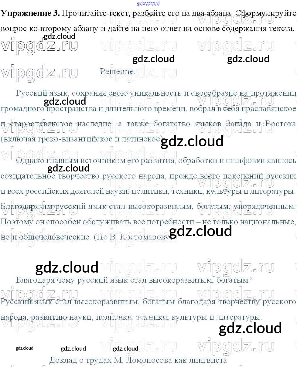 Ответ на задание 3 Учебник Русский язык за 8 (восьмой) класс Тростенцова, Ладыженская, Дейкина, Александрова 2014